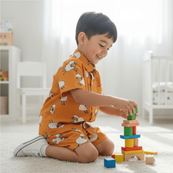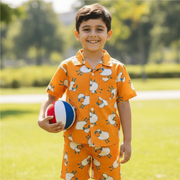 Scoops of fun meet sunny style in this adorable orange sheep co-ord set made for little daydreamers. Light, comfy and playful, it’s perfect for twirls, treats and carefree adventures all day long.